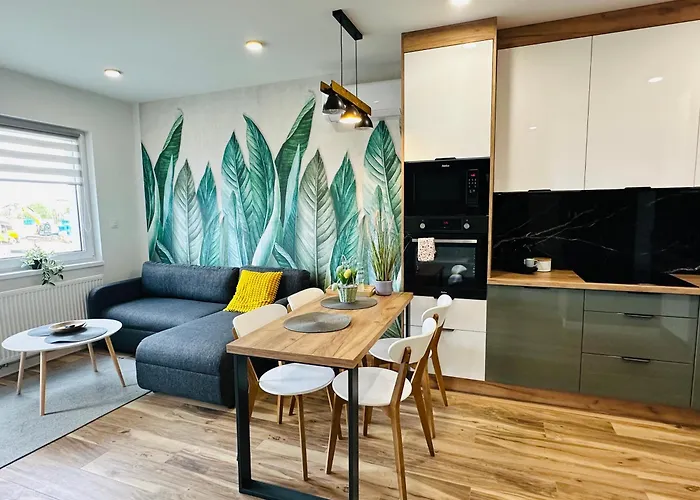 Apartamenty Debowa 10アパ-トメントには,器具でいっぱいの台所,バルコニ-,衛星放送チャンネルの薄型テレビ と冷暖房付きの客室があります. Church of Graceから車で5分,Christmas Ornaments Museumはアパ-トメントから車で10分です.